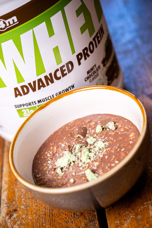 Ingredients: Gluten free porridge oats, Natural Yogurt, Semi Skimmed Milk, Cocoa powder, Per4m minty chocolate flavour protein powder (Whey Protein Concentrate (Milk), Whey Protein Isolate (Milk), Milk Protein Concentrate, Skim Milk Powder, Flavouring, Reduced - Fat Cocoa Powder, Thickeners (Carboxymethyl cellulose, Guar Gum), Sodium Chloride, Emulsifier (Soy Lecithin), Sweetener (Sucralose). Mint Aero chocolate pieces (Sugar, Vegetable Fats (Palm, Shea, Sal), Whole Milk Powder, Whey Powder Product (Milk), Cocoa Butter, Cocoa Mass, Skimmed Milk Powder, Glucose Syrup, Butterfat (Milk), Emulsifier (Lecithins), Flavouring, Colours (Copper Complexes of Chlorophyllins, Curcumin), Milk chocolate contains cocoa solids 25% minimum, milk solids 14% minimum and vegetable fats in addition to cocoa butter