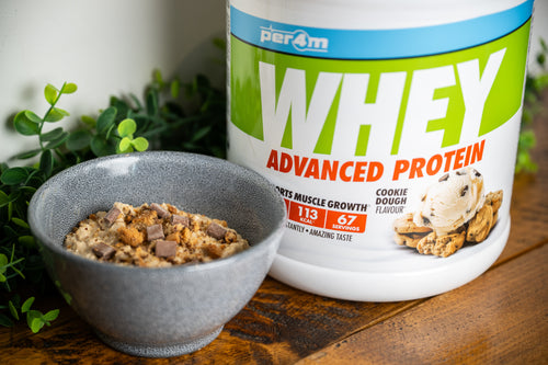 Gluten free porridge oats, Natural yogurt, Semi skimmed milk, Dark chocolate chips, Per4m cookie dough flavor protein powder (Whey Protein Concentrate (Milk) [Emulsifier (Soy Lecithin)], Whey Protein Isolate (Milk) [Emulsifier (Soy Lecithin)], Milk Protein Concentrate, Skim Milk Powder, Flavouring, Thickener (Sodium Carboxymethyl Cellulose, Guar Gum), Salt, Colour (Ammonia Caramel), Sweetener (Sucralose). Maryland cookie pieces (Wheat Flour (Wheat Flour, Calcium Carbonate, Niacin, Iron, Thiamin), Sugar, Sustainable Palm Oil, Chocolate Chips (15%) (Sugar, Cocoa Mass, Vegetable Fats (Sustainable Palm, Sal, Shea), Emulsifiers (Soya Lecithin, E442, E476), Cocoa Butter, Flavourings), Caramel Pieces (3%) (Fructose Glucose Syrup, Glucose Syrup, Apple Puree, Sugar, Humectant (Glycerol), Wheat Fibre, Palm Fat, Whey (Milk), Butter (Milk), Gelling Agent (Pectin), Skimmed Milk Powder, Flavourings, Acidity Regulator (Lactic Acid), Emulsifier (Sunflower Lecithin)), Partially Inverted Sugar Syrup, Rice Flour, Whey or Whey Derivatives (Milk), Raising Agents (Sodium Bicarbonate, Ammonium Bicarbonate), Salt, Flavourings, Malted Barley Flour